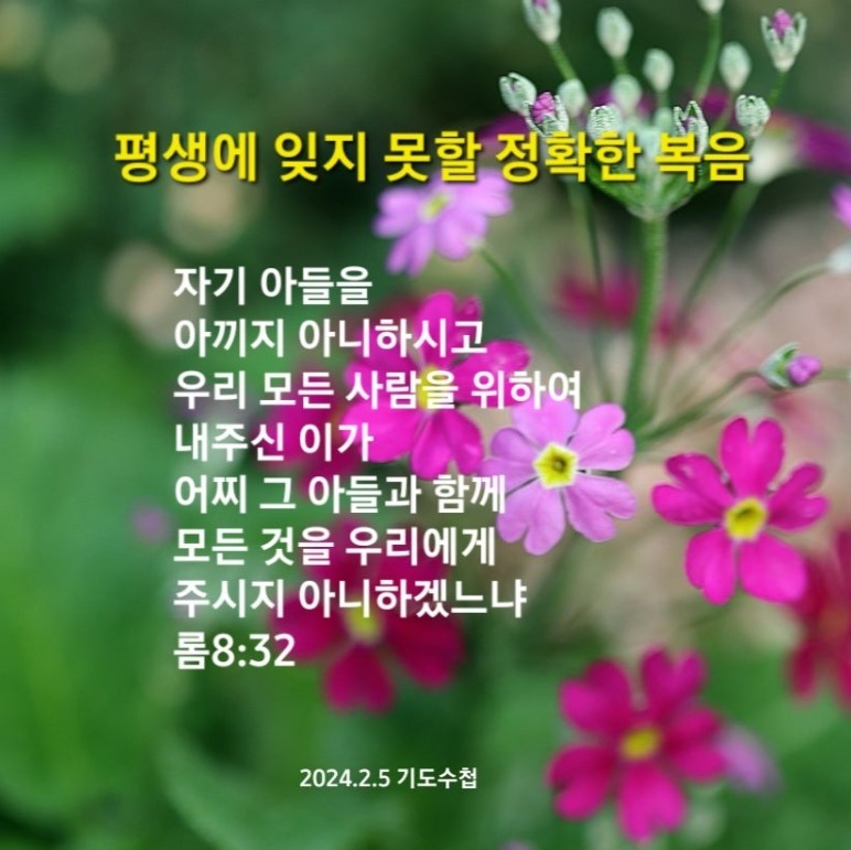 하나님, 감사드립니다. 오늘 응답의 날이 되게 하옵소서. 은혜의 날이 되게 해 주옵소서. 영적인 치유와 힘을 얻는 날이 되게 해 주옵소서. 예수 그리스도 이름으로 기도하옵나이다. 아멘.