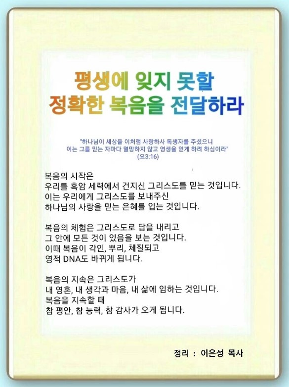 평생에 잊지 못할 정확한 복음을 전달하라