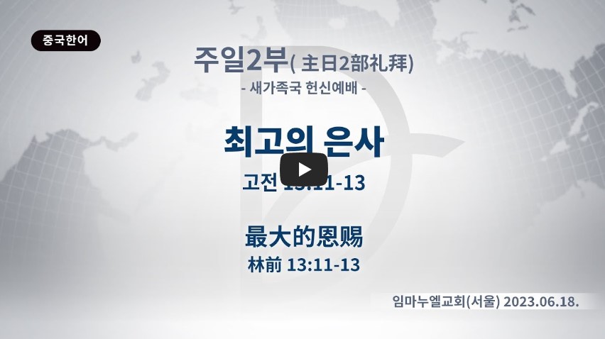 고린도전서 13:11-13 / 그런즉 믿음, 소망, 사랑, 이 세 가지는 항상 있을 것인데 그 중의 제일은 사랑이라 (13)