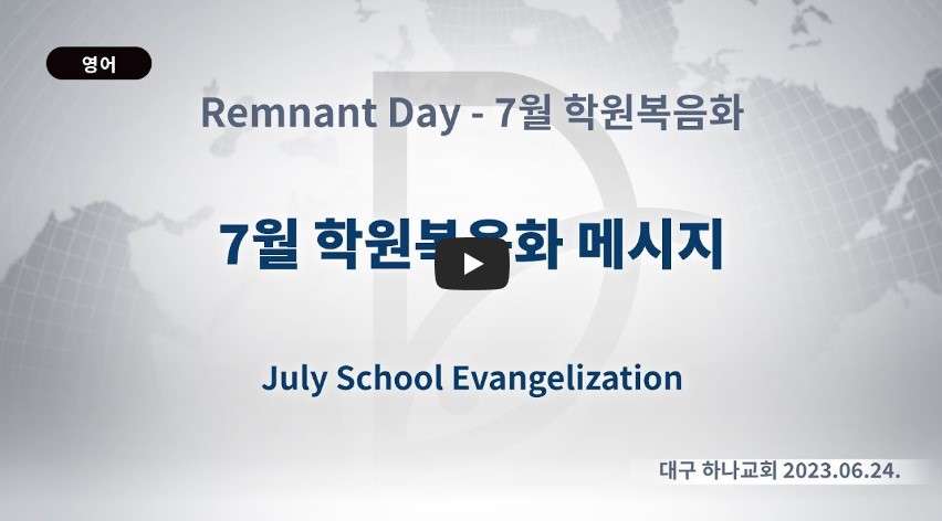 인터넷총국 (홈페이지 http://data.rutc.com) 후원: (국민은행) 856701-04-233309 (사)세계복음화전도협회 인터넷총국 분류 핵심훈련(2023-제123RUTC응답25)- 25 제목 (렘넌트데이) 학원복음화 7월 성경 갈라디아