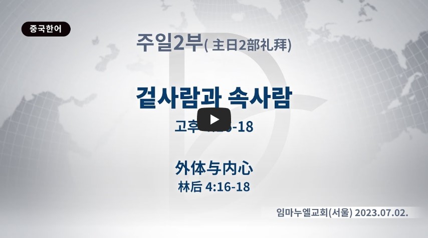 인터넷총국 (홈페이지 http://data.rutc.com) 후원: (국민은행) 856701-04-233309 (사)세계복음화전도협회 인터넷총국 분류 주일2부 예배- 2023년 제123RUTC응답 25 제목 겉 사람과 속 사람 성경 고린도후서 4:16-1