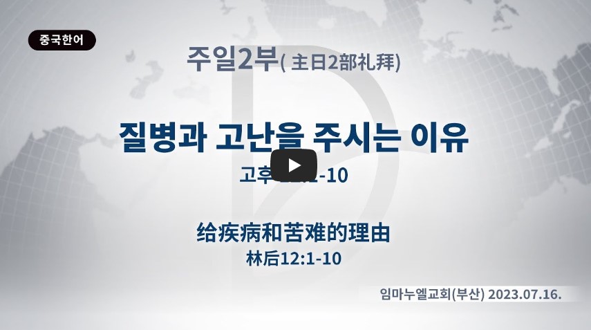 인터넷총국 (홈페이지 http://data.rutc.com) 후원: (국민은행) 856701-04-233309 (사)세계복음화전도협회 인터넷총국 분류 주일2부 예배- 2023년 제123RUTC응답 25 제목 (237선교회헌신) 질병과 고난을 주시는