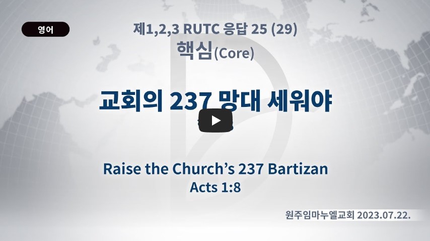 인터넷총국 (홈페이지 http://data.rutc.com) 후원: (국민은행) 856701-04-233309 (사)세계복음화전도협회 인터넷총국 분류 핵심훈련(2023-제123RUTC응답25)- 29 제목 교회의 237 망대 세워야 성경 사도행전 1:8 일