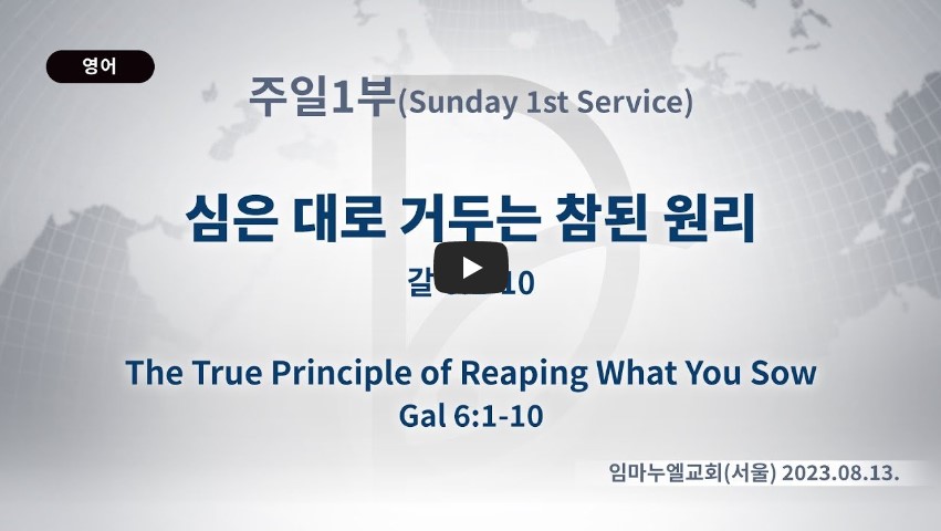 인터넷총국 (홈페이지 http://data.rutc.com) 후원: (국민은행) 856701-04-233309 (사)세계복음화전도협회 인터넷총국 분류 주일1부 예배- 2023년 제123RUTC응답 25 제목 심은대로 거두는 참된 원리 성경 갈라디