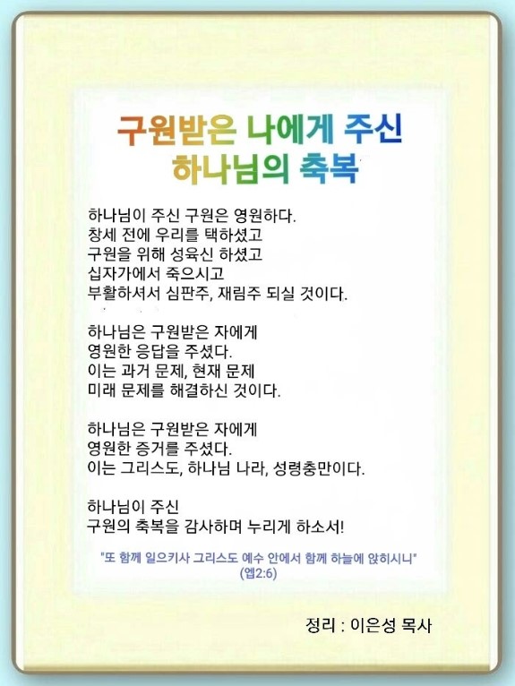 구원받은 나에게 주신 하나님의 축복