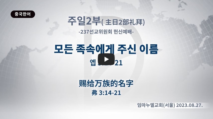 2023.08.27 주일 2부 - 모든 족속에게 주신 이름 (엡 3:14-21) 237 선교는 준비된 사람에게 주신다. 유대인들은 복음도 아니었고 준비가 안 돼 있었다. 초대교회는 약하지만 준비가 돼 있었다. 하나님은