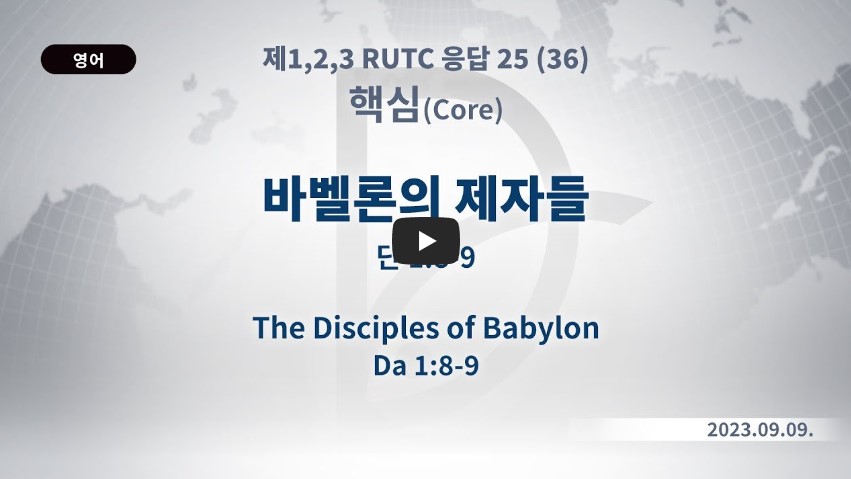 인터넷총국 (홈페이지 http://data.rutc.com) 후원: (국민은행) 856701-04-233309 (사)세계복음화전도협회 인터넷총국 분류 핵심훈련(2023-제123RUTC응답25)- 36 제목 바벨론의 제자들 성경 다니엘 1:8-9 일시/장