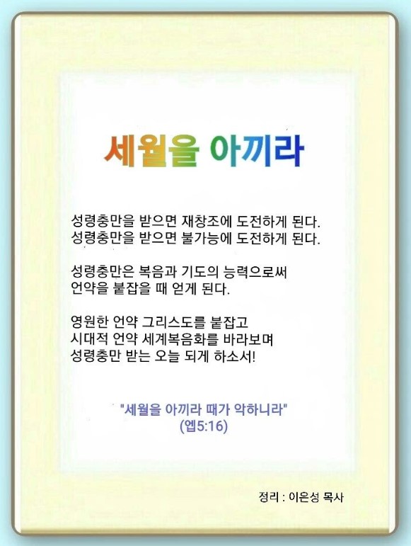 에베소서 5:15-18 / 세월을 아끼라 때가 악하니라 (16)