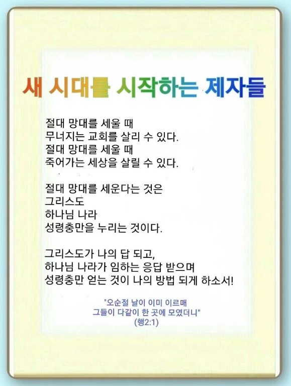 인터넷총국 (홈페이지 http://data.rutc.com) 후원: (국민은행) 856701-04-233309 (사)세계복음화전도협회 인터넷총국 분류 핵심훈련(2023-제123RUTC응답25)- 37 제목 새 시대를 시작하는 제자들 성경 사도행전 2