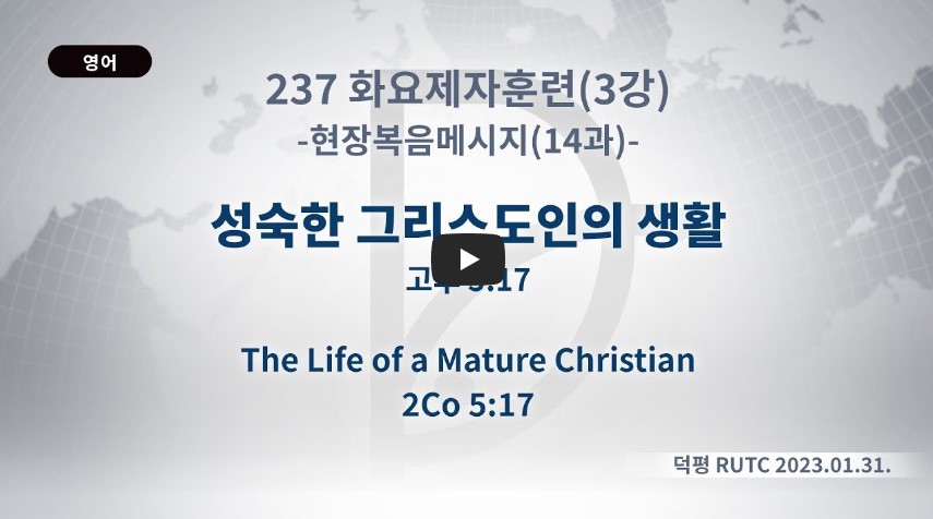 인터넷총국 (홈페이지 http://data.rutc.com) 후원: (국민은행) 856701-04-233309 (사)세계복음화전도협회 인터넷총국 분류 2022- 237화요제자훈련 제목 현장복음메시지 14과: 성숙한 그리스도인의 생활 성경