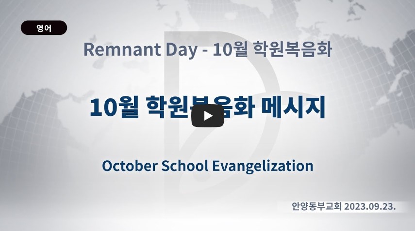 인터넷총국 (홈페이지 http://data.rutc.com) 후원: (국민은행) 856701-04-233309 (사)세계복음화전도협회 인터넷총국 분류 핵심훈련(2023-제123RUTC응답25)- 38 제목 (렘넌트데이) 학원복음화 10월 성경 일시/장