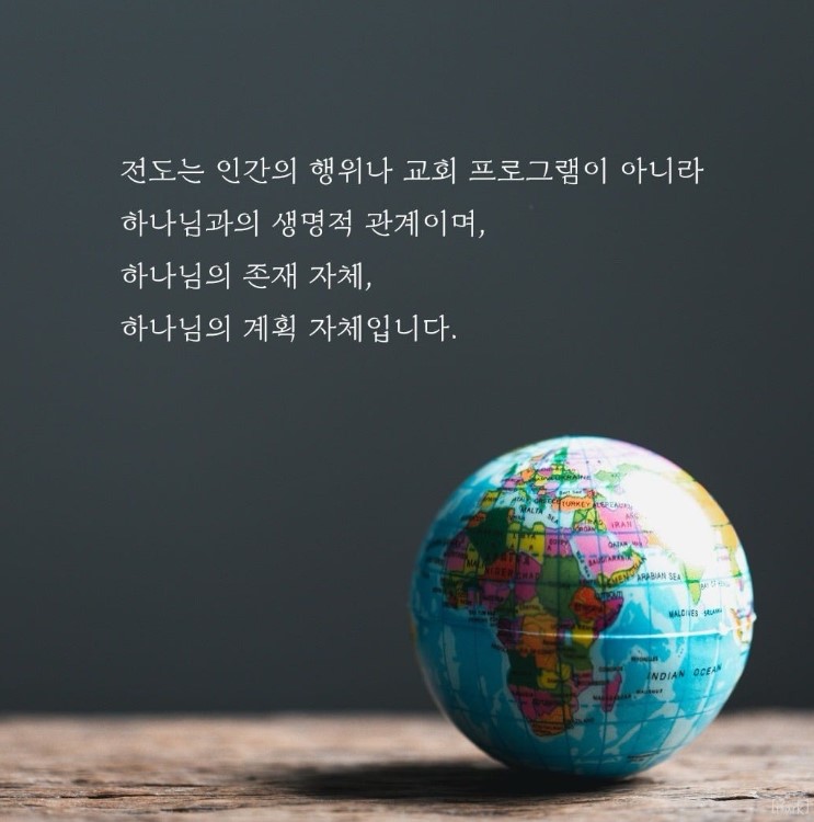 ♠전도는 즉흥적인 활동이 아니다. 하나님의 말씀에 단순히 대답하는 형식적 반응은 더더욱 아니다. 하나님과의 생명적인 관계이며 하나님의 존재 자체와 거대한 하나님의 계획 자체인 것이다.