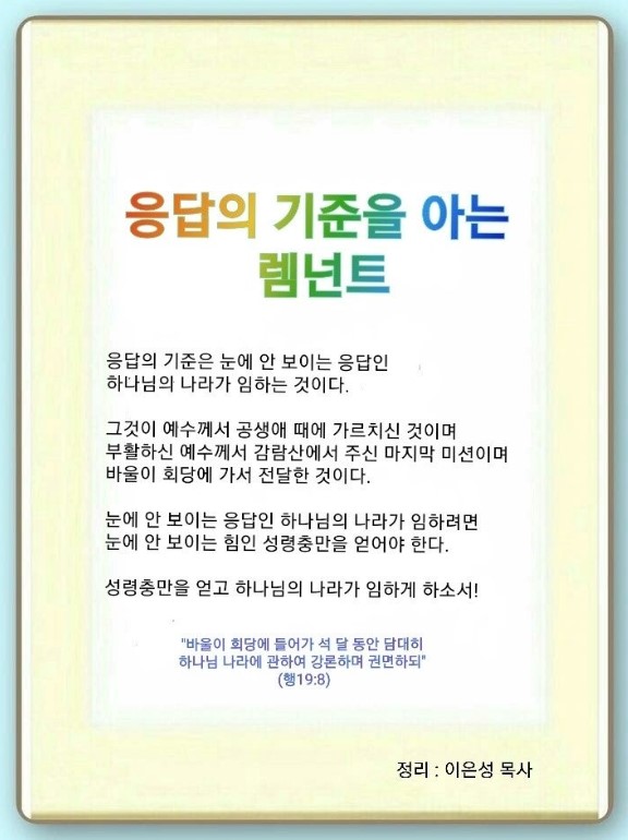 응답의 기준을 아는 렘넌트(행19:8-10)