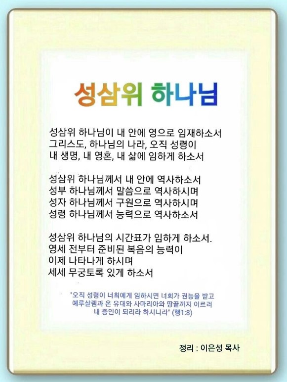 1. 성삼위 하나님이 내 안에 영으로 임재