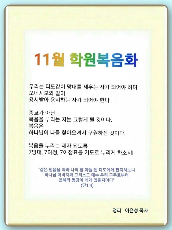 바울은 디도를 참 아들이라고 했습니다. 렘넌트는 이렇게 되어야 합니다. 우리는 하나님이 남겨 둔 자요,(딛 1:4) 디도같은 메시지 전달자요, 망대를 세우는 자입니다. 이것이 우리의 사명입니다.