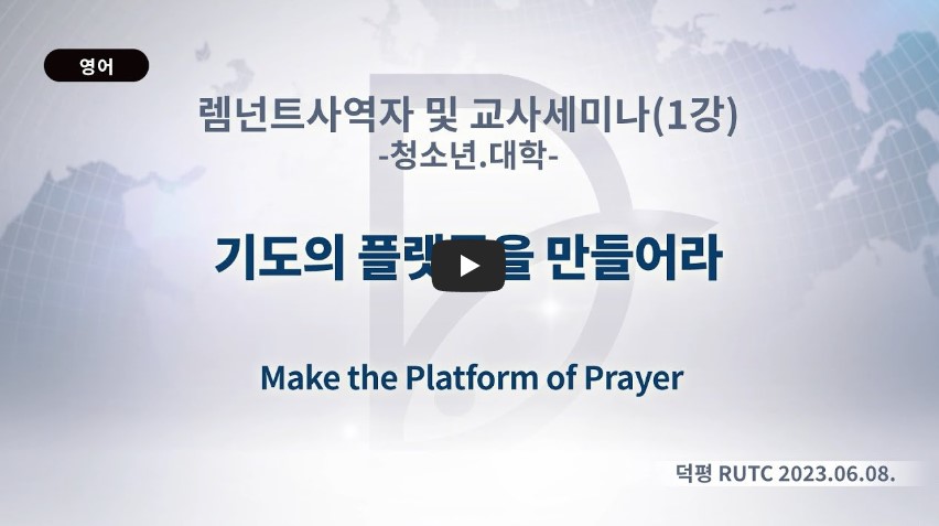 인터넷총국 (홈페이지 http://data.rutc.com) 후원: (국민은행) 856701-04-233309 (사)세계복음화전도협회 인터넷총국 분류 2023 제123RUTC 응답25- 렘넌트사역자/교사세미나(중/고/대/청) 제목 1강: 기도의 플랫