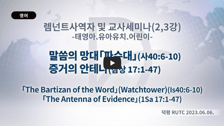 인터넷총국 (홈페이지 http://data.rutc.com) 후원: (국민은행) 856701-04-233309 (사)세계복음화전도협회 인터넷총국 분류 2023 제123RUTC 응답25 - 렘넌트사역자/교사세미나(태영아/유아유치) 제목 2강: 말씀