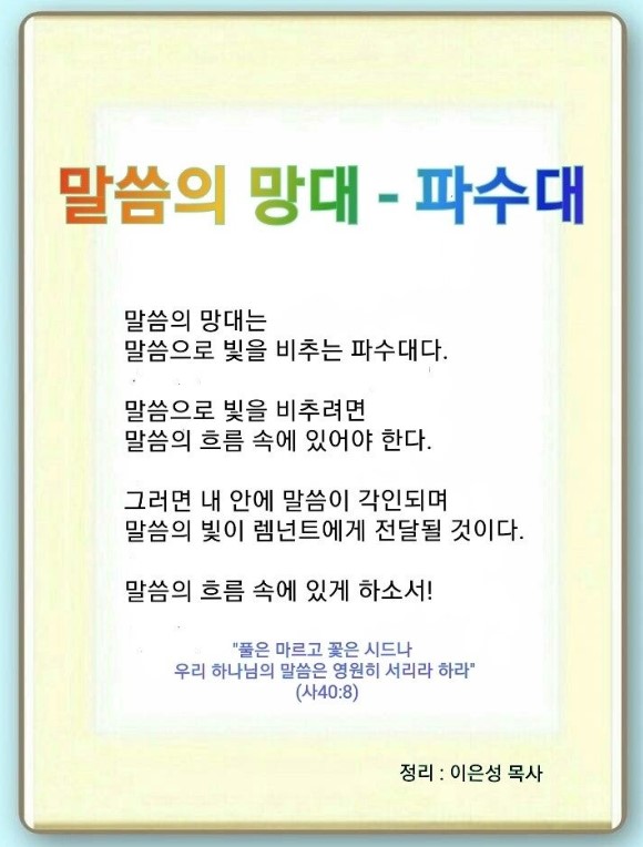 이사야 40:6-10 / 풀은 마르고 꽃은 시드나 우리 하나님의 말씀은 영원히 서리라 하라 (8)