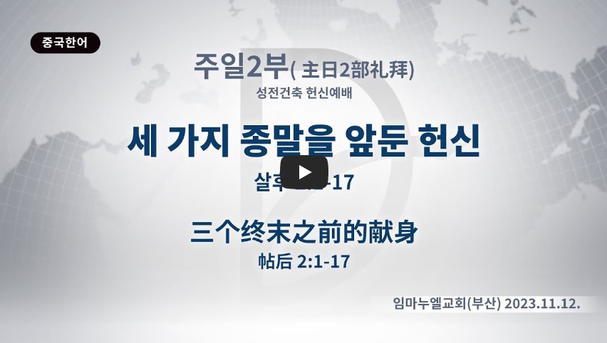 인터넷총국 (홈페이지 http://data.rutc.com) 후원: (국민은행) 856701-04-233309 (사)세계복음화전도협회 인터넷총국 분류 주일2부 예배- 2023년 제123RUTC응답 25 제목 (성전건축헌신) 세가지 종말을 앞둔 헌