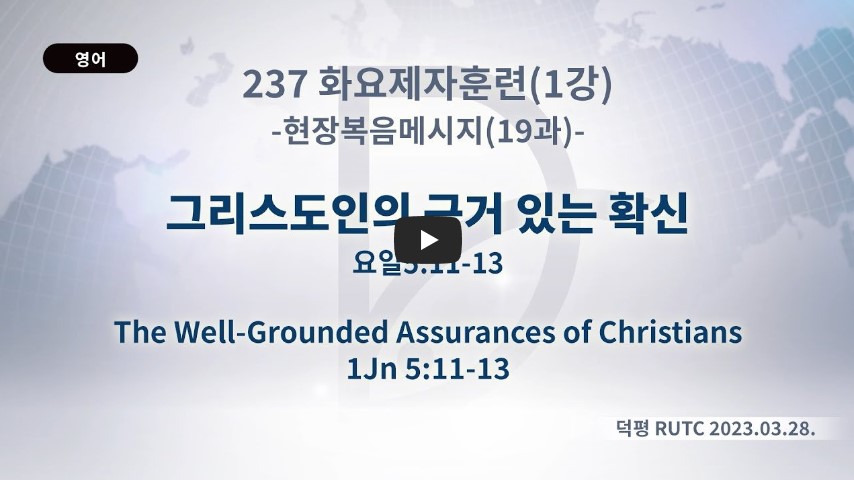 인터넷총국 (홈페이지 http://data.rutc.com) 후원: (국민은행) 856701-04-233309 (사)세계복음화전도협회 인터넷총국 분류 2023 제123RUTC 응답25 제목 그리스도인의 근거있는 확신 성경 일시/장소 2023년 3월