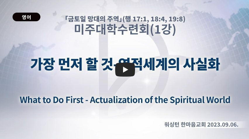 인터넷총국 (홈페이지 http://data.rutc.com) 후원: (국민은행) 856701-04-233309 (사)세계복음화전도협회 인터넷총국 분류 2023 제123RUTC 응답25- 미주 대학수련회 제목 1강: 가장 먼저할 것 → 영적 세계의 사