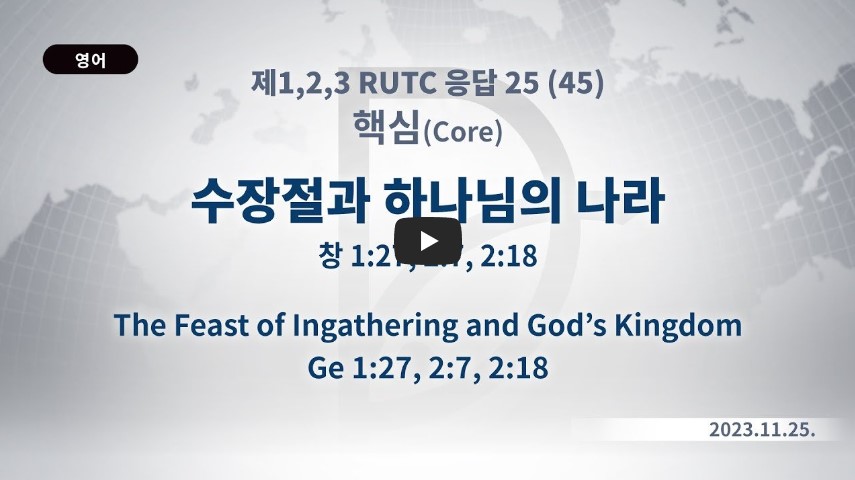 인터넷총국 (홈페이지 http://data.rutc.com) 후원: (국민은행) 856701-04-233309 (사)세계복음화전도협회 인터넷총국 분류 핵심훈련(2023-제123RUTC응답25)- 45 제목 수장절과 하나님의 나라 성경 창세기 1:27, 2: