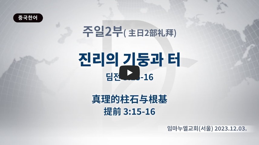 인터넷총국 (홈페이지 http://data.rutc.com) 후원: (국민은행) 856701-04-233309 (사)세계복음화전도협회 인터넷총국 분류 주일2부 예배- 2023년 제123RUTC응답 25 제목 진리의 기둥과 터 성경 디모데전서 3:15-1