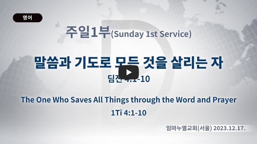 디모데전서 4:1-10 / 하나님께서 지으신 모든 것이 선하매 감사함으로 받으면 버릴 것이 없나니 하나님의 말씀과 기도로 거룩하여짐이라 (4~5)