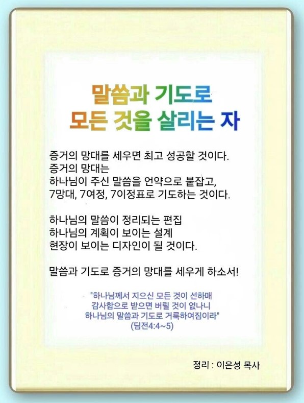 우리는 7망대, 7여정, 7이정표로 계속 기도해야 합니다.