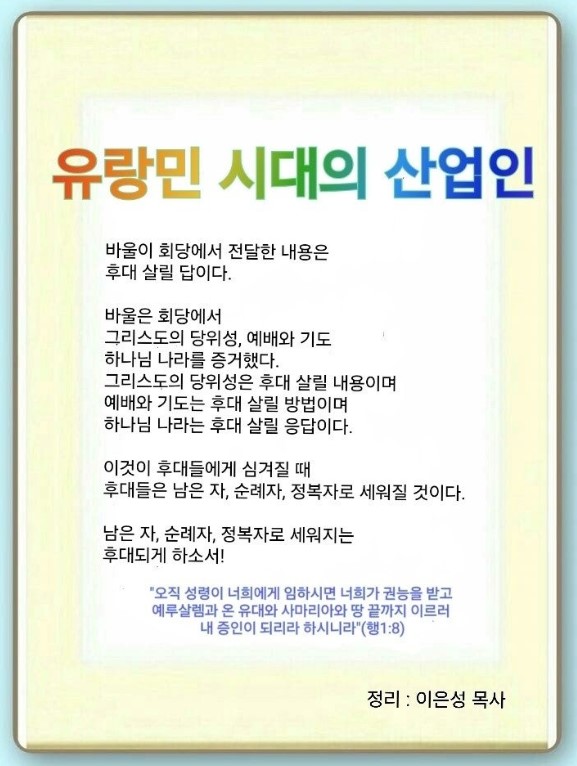 인터넷총국 (홈페이지 http://data.rutc.com) 후원: (국민은행) 856701-04-233309 (사)세계복음화전도협회 인터넷총국 분류 핵심훈련(2023-제123RUTC응답25) - 제26차 세계산업인대회 제목 3강: 유랑민 시대의 산