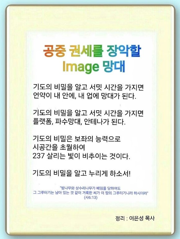 4강: 리더의 제4망대 - “공중 권세를 장악 할 Image 망대”