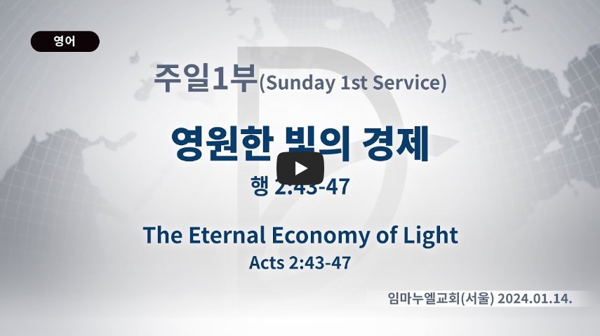 인터넷총국 (홈페이지 http://data.rutc.com) 후원: (국민은행) 856701-04-233309 (사)세계복음화전도협회 인터넷총국 분류 주일1부 예배- 2024년 제123RUTC응답의 영원 제목 영원한 빛의 경제 성경 사도행전 2: