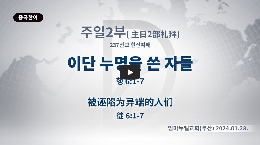 인터넷총국 (홈페이지 http://data.rutc.com) 후원: (국민은행) 856701-04-233309 (사)세계복음화전도협회 인터넷총국 분류 주일2부 예배- 2024년 제123RUTC응답의 영원 제목 (237선교헌신) 이단 누명을 쓴 자들