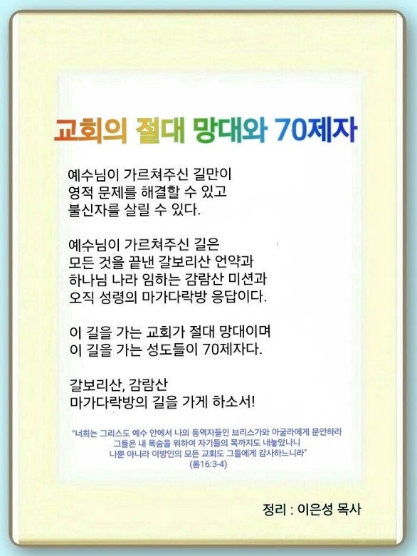 교회의 절대 망대와 70제자(뇌에기가팍팍)