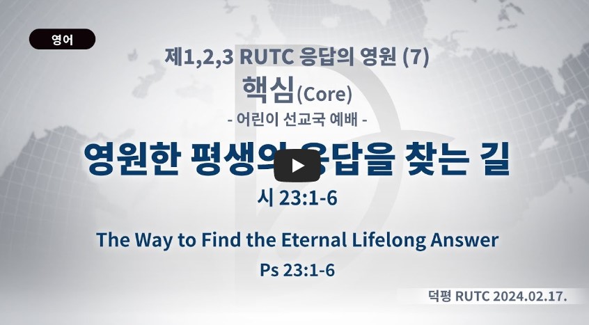 인터넷총국 (홈페이지 http://data.rutc.com) 후원: (국민은행) 856701-04-233309 (사)세계복음화전도협회 인터넷총국 분류 핵심훈련(2024-제123RUTC응답의영원)- 07 제목 (어린이선교국) 영원한 평생의 응답을