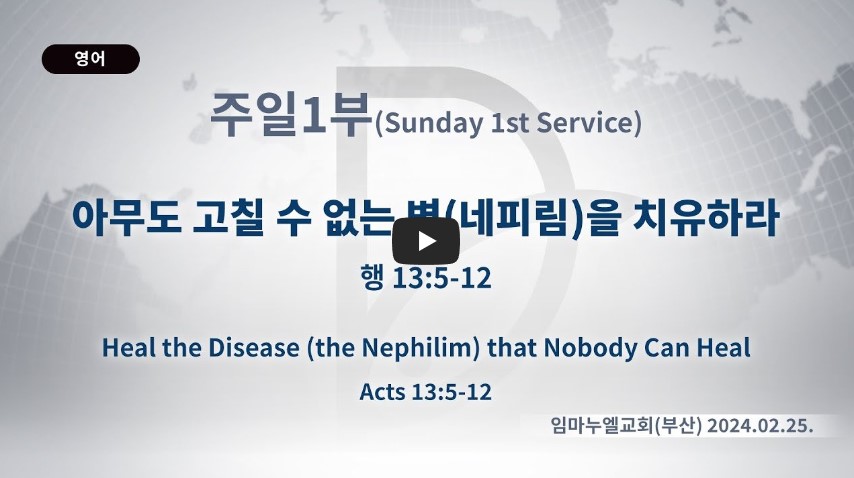사도행전 13:5-12 / 보라 이제 주의 손이 네 위에 있으니 네가 맹인이 되어 얼마 동안 해를 보지 못하리라 하니 즉시 안개와 어둠이 그를 덮어 인도할 사람을 두루 구하는지라 (11)