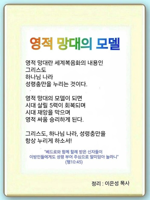 영적망대의 모델 2023.10.07 제20차 2023세계군 선교대회 1강