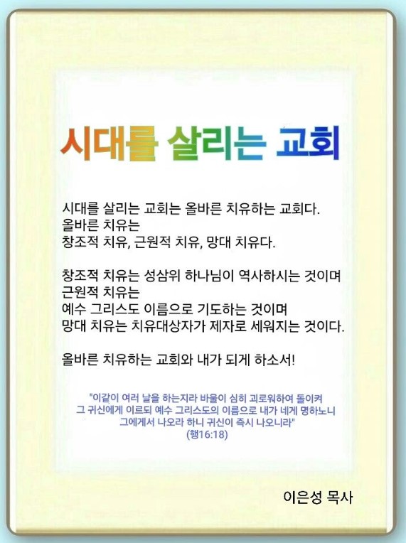 영적 문제로 시달리던 사람이 치유되면 사명자나 제자가 됩니다. 우리의 기도는 하나님 보좌 앞에 있는 그릇에 담깁니다.(계 8:3-5) 이것을 알고 영적 싸움을 하면 반드시 이기게 됩니다.(단 10:10-20)