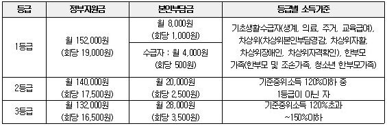 ※ 등급별 소득기준 상이 (하단 “서비스 가격 및 결제원칙” 참고)
