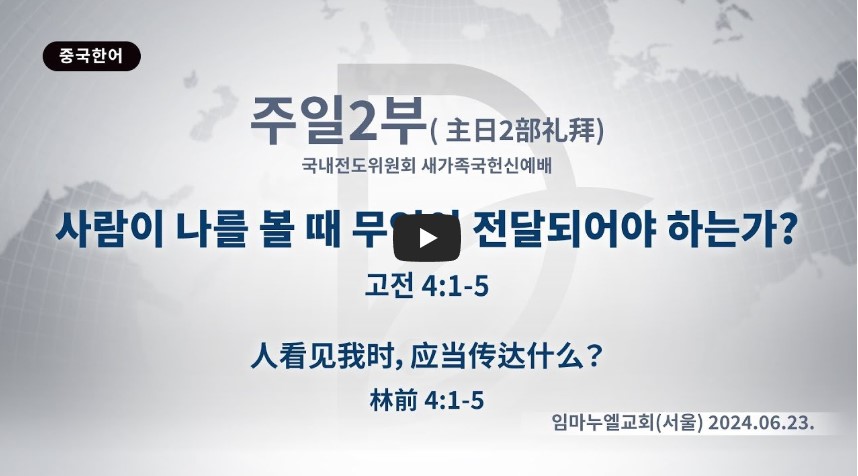 고린도전서 4:1-5 / 사람이 마땅히 우리를 그리스도의 일꾼이요 하나님의 비밀을 맡은 자로 여길지어다 (1)