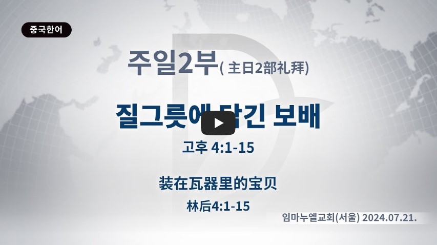 고린도후서 4:1-15 / 우리가 이 보배를 질그릇에 가졌으니 이는 심히 큰 능력은 하나님께 있고 우리에게 있지 아니함을 알게 하려 함이라 (7)