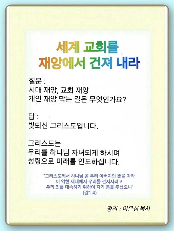 우리는 특별 언약 시간표를 가져야 합니다. 아침에 나를 살리고, 낮에 모든 것을 기도로 바꾸며, 밤에 답을 찾고 치유하는 깊은 기도를 하면 됩니다. 그래서 재앙에 빠진 자를 건져내야 합니다.