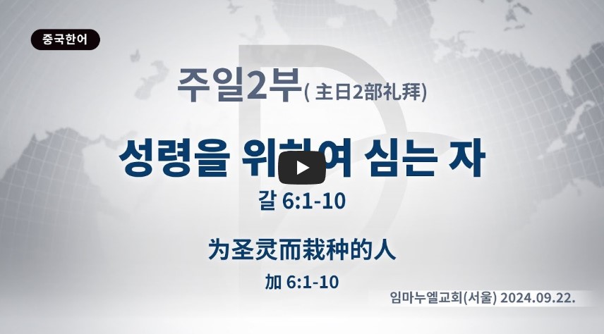갈라디아서 6:1-10 / 자기의 육체를 위하여 심는 자는 육체로부터 썩어질 것을 거두고 성령을 위하여 심는 자는 성령으로부터 영생을 거두리라 (8)