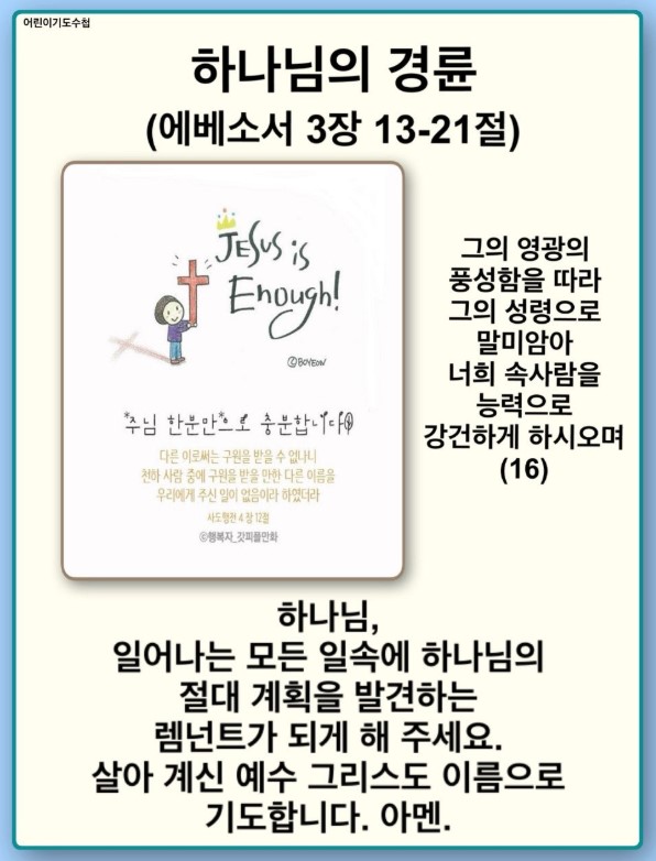 에베소서 3:13-21 / 그의 영광의 풍성함을 따라 그의 성령으로 말미암아 너희 속사람을 능력으로 강건하게 하시오며 (16)
