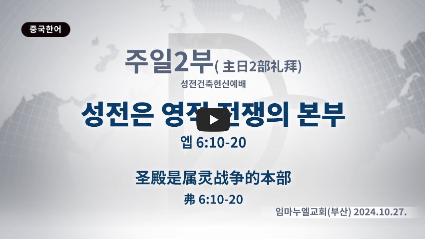 에베소서 6:10-20 / 우리의 씨름은 혈과 육을 상대하는 것이 아니요 통치자들과 권세들과 이 어둠의 세상 주관자들과 하늘에 있는 악의 영들을 상대함이라 (12)