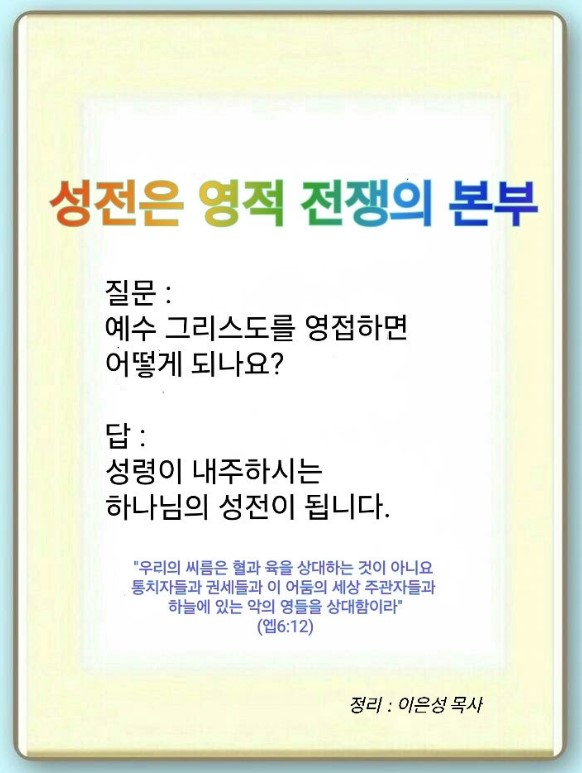 | 전도와 기도 / 영적 전쟁에 승리하자(부산간병인) (0) | 2025.07.14 |