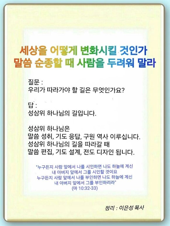 세상을 어떻게 변화시킬 것인가/ 말씀 순종할 때 사람을 두려워 말라