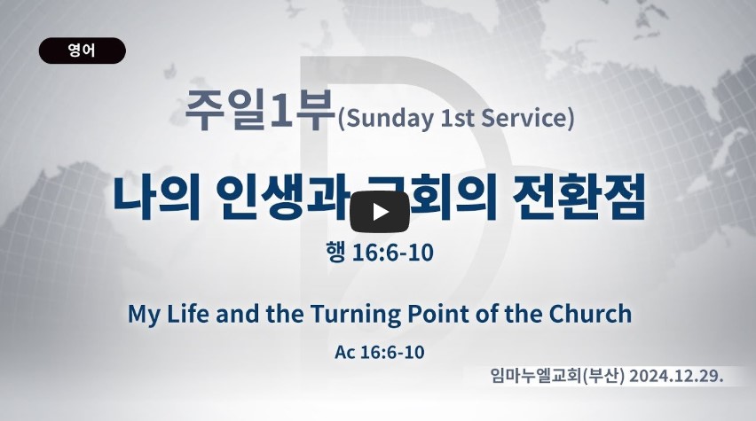 하나님께 감사드립니다. 짧은 시간이지만 중요한 시간이 되게 하옵소서. 하나님의 완전한 언약을 보게 해 주옵소서. 내 인생에 전환점을 보게 해 주옵시며 이제 우리 교회에 전환점을 보게 해 주옵시며 이제 우리 후대와 세계 전환점을 볼 수 있도록 역사해 주옵소서. 예수 그리스도 이름으로 기도하옵나이다. 아멘.