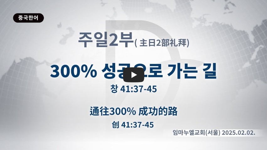 요셉은 가정에서도, 보디발의 집에서도, 관원장에게도 버림받았지만 흔들리지 않았습니다. 왜냐하면 요셉은 하나님이 주신 300%가 준비된 사람이었기 때문입니다. 내가 꼭 해야 될 것과 현장과 미래에 꼭 필요한 것을 준비하면 300%의 여정이 시작됩니다. 이 기도를 시작하면 업에 300%의 응답이 옵니다. 나의 달란트가 오직의 응답으로 바뀌고 현장에서 유일성이 나오며, 미래가 보이는 재창조의 응답이 오는 것입니다. 기도 300%는 7망대를 누리고, 7여정을 가면서, 곳곳에 7이정표를 세우는 것입니다. 그러면 전도와 선교의 응답이 일어나 성령의 인도를 받게 되고,(행 13:1-4) 흑암이 결박되며,(행 13:5-12) 미래 시스템이 만들어집니다.(행 13:12) 병든 현장을(행 13, 16, 19) 회복하는 방법은 네피림을 꺾는 것입니다. 우리의 업에 플랫폼, 파수대, 안테나가 만들어지는 것이 300%를 누리는 삶입니다. 렘넌트들은 왕과 237-5000종족 앞에 서야 되기 때문에 300%의 응답을 받아야 합니다.
