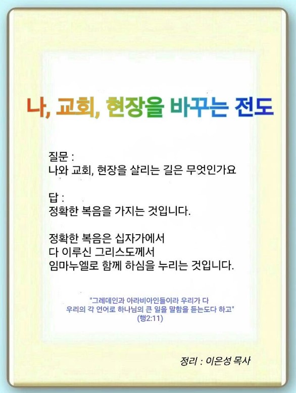 우리는 정확한 복음을 가지고 있어야 합니다. 그래야만 나와 교회, 현장을 살릴 수 있습니다. 임마누엘의 축복을 아는 사람은 네피림을 이길 수 있습니다. 그래서 우리는 24·25·00의 기도 비밀을 가지고 있어야 합니다. 아침, 점심, 저녁이 전부 기도로 바뀌는 24 축복을 누려야 합니다. 그러면 반드시 보좌의 축복이 임하고,(25) 작품이 나옵니다.(00) 성삼위 하나님으로 7·7·7의 축복을 누리는 것이 행복하고 평안해야 합니다. 그 능력이 각인, 뿌리, 체질 되면 출애굽이 되어지고 세계복음화가 일어납니다. 마가 다락방에 초대교회가 모인 것처럼 기도의 비밀을 누리면 영적 세계가 보입니다. 다윗처럼 기도에 올인하면 왕이 되고, 요셉처럼 기도에 올인하면 총리가 됩니다. 이것이 올 아웃, 올 체인지입니다.